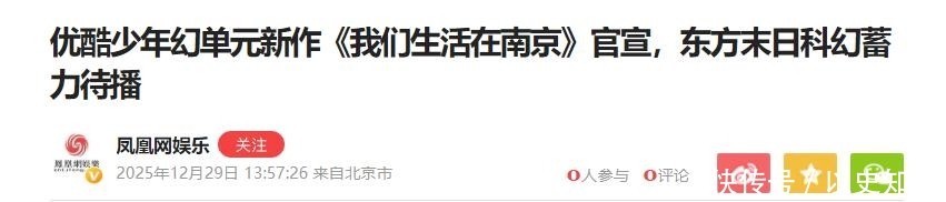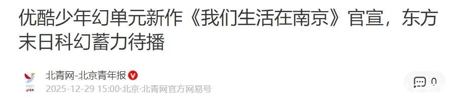 2025年12月29日,《我们生活在南京》正式官宣定档,由优酷平台全网独家播出,揭开东方末日科幻题材的新篇章。